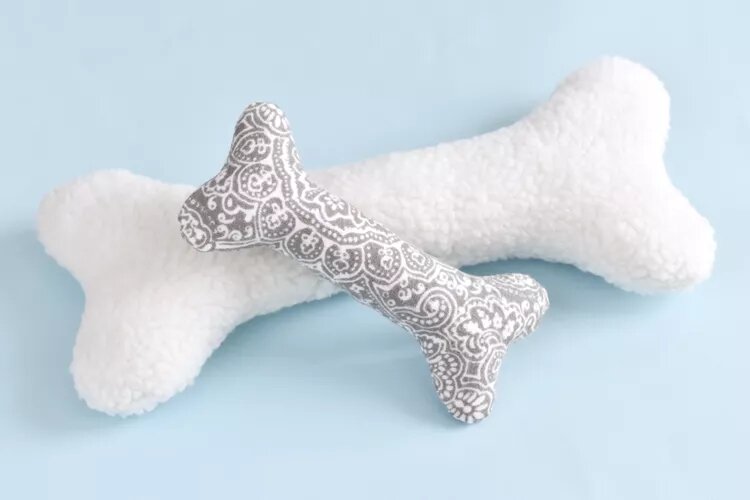 Ваша собака — особенный друг, который заслуживает самого лучшего, в том числе и игрушки, сделанной вручную. Эту игрушку очень легко сшить, и на ее изготовление у вас уйдет всего около получаса. Когда вы шьете игрушки для собак, вы можете выбрать материалы и цветовую гамму и подогнать их по размеру вашего питомца. Эта выкройка кости доступна в двух размерах для больших и маленьких собак. Помимо изготовления кости для собственного щенка, собачья кость своими руками может стать отличным персонализированным подарком для семьи и друзей, у которых есть собаки-компаньоны. Что вам понадобится Оборудование/Инструменты Материалы Распечатайте выкройку собачьей кости и вырежьте ткань. Распечатайте или переведите с экрана выкройку кости, приведенную ниже, и вырежьте ее. Используя два слоя внешней ткани, прикрепите выкройку к ткани, обведите ее. Если вы делаете большую собачью кость, поместите прямой край шаблона на сгиб. А если вы работаете с более толстой тканью, например с шерпой, лучше всего рез