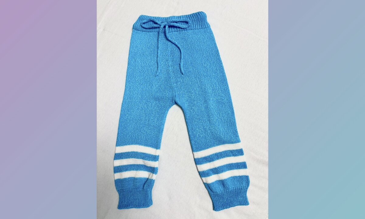Размер. Штанишки на ребенка 4-6 месяцев Пряжа. Пряжа "Жемчужная" 50% хлопок, 50% вискоза. Цвет: Белый, Льдинка. Переплетение. Кулирная гладь Вязальная машина; 5 класс Сильвер-рид SK280/SR60 Плотность вязания: 9 Петельная проба. Пг-2,86п/см, Пв-3,74 р/см Примечание На выкройке левая деталь штанишек показана без учета резинок, правую вяжем симметрично. Обе детали вяжутся снизу вверх. Надвязку со стороны заднего шва выполняем частичным вязанием. Резинка по низу штанины 1х1 цельновязанная - 4 см. Пояс также выполнен резинкой 1х1. Для выполнения пояса на высоте 43 см (учитывая резинку по низу штанины) необходимо перейти на двухфонтурное вязание резинки 1х1. Резинка двойная, поэтому вяжем резинку высотой 8 см и прикетлевываем на машине. На высоте 2 см со стороны переднего шва на 4-ой и 5 -ой иглах вывязываем отверстие для шнура. Шнурок длиной 80 см вяжем на 3 иглах. Сборка Готовые детали отпариваем, сшиваем вертикальным швом https://dzen.ru/video/watch/627e759a41bb07610c40efa4?share_to=l