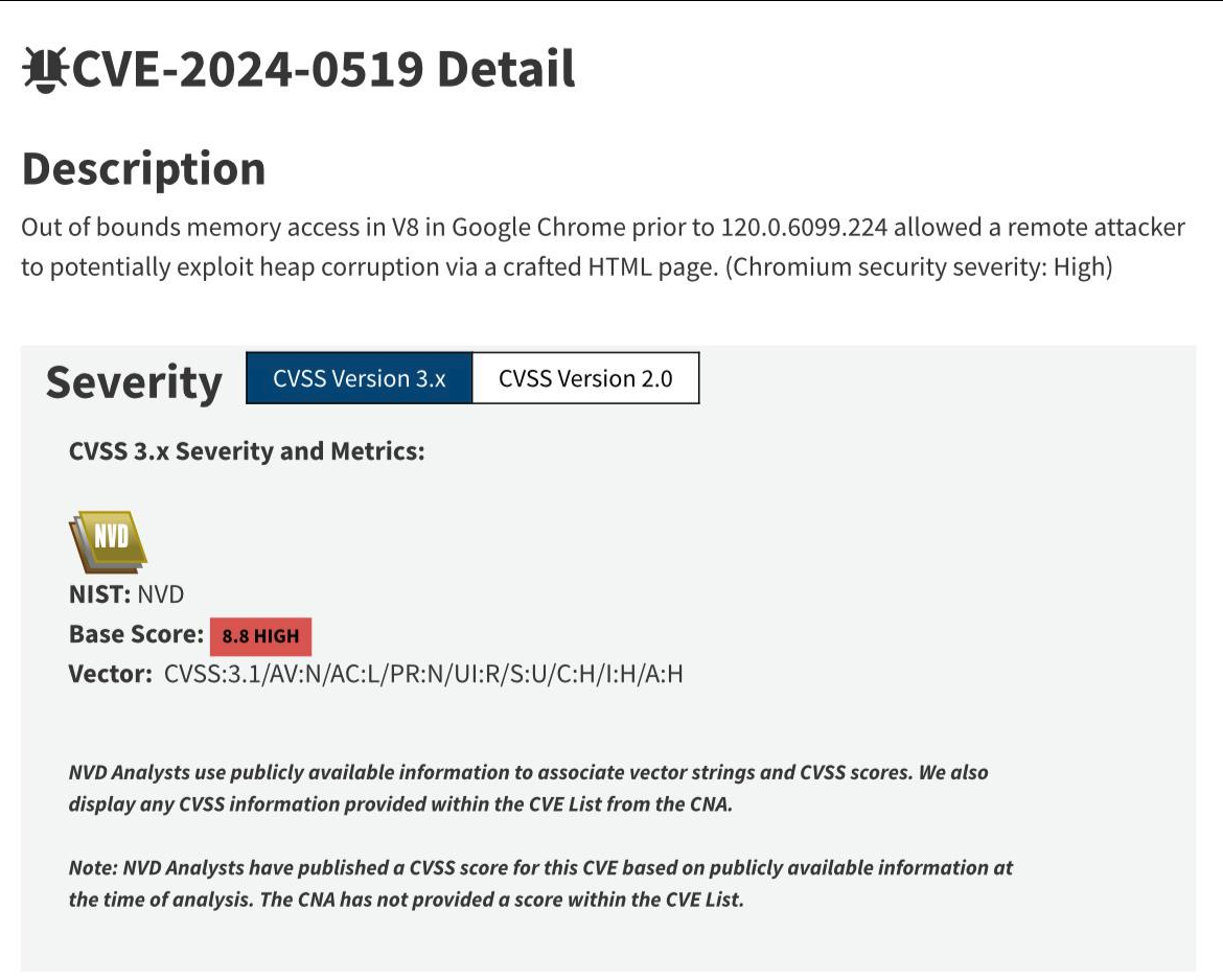 При этом даже не надо нажимать на ссылку — достаточно зайти на вредоносный сайт. Разрабы отметили высочайший уровень угрозы — 8,8.