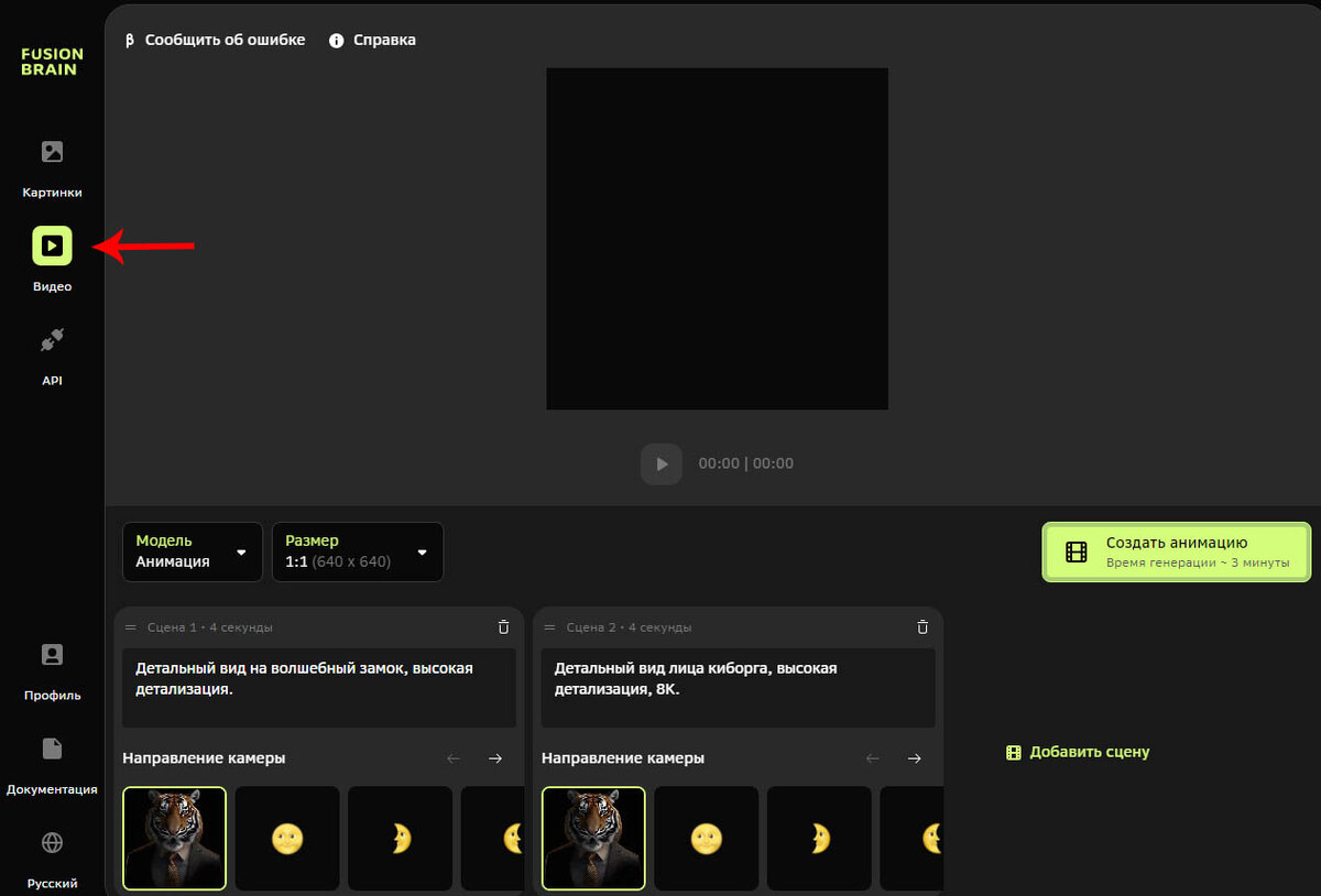 В прошлый раз я рассказывала, как в Кандинском сделать фото, давайте сегодня поговорим о создании видео. Когда заходим в Кандинский по умолчанию открывается создание фото. Чтобы сделать видео, надо активировать кнопку: Что мне нравится в Кандинском - можно сделать видео до трех сцен по 4 секунды. По умолчанию стоит "модель - анимация", именно здесь можно делать до 12 секунд видео. Можно выбрать размер: Дальше нужно написать, что вы хотите видеть в видео. Если какой-то объект должен остаться на протяжении всего ролика, то его описание нужно повторить в других сценах слово в слово. Так же можно подобрать направление камеры. Жмите на стрелку, вариантов много. Если навести курсор на квадрат с направлением, можно увидеть, куда и как будет двигаться видео. Есть еще режим "Модель - видео". В итоге будет один кадр в 7 секунд практически без движения, например, по запросу "русское поле, летний день" будут двигаться только облака. Правда, качество получилось не очень. На мой взгляд, изображения