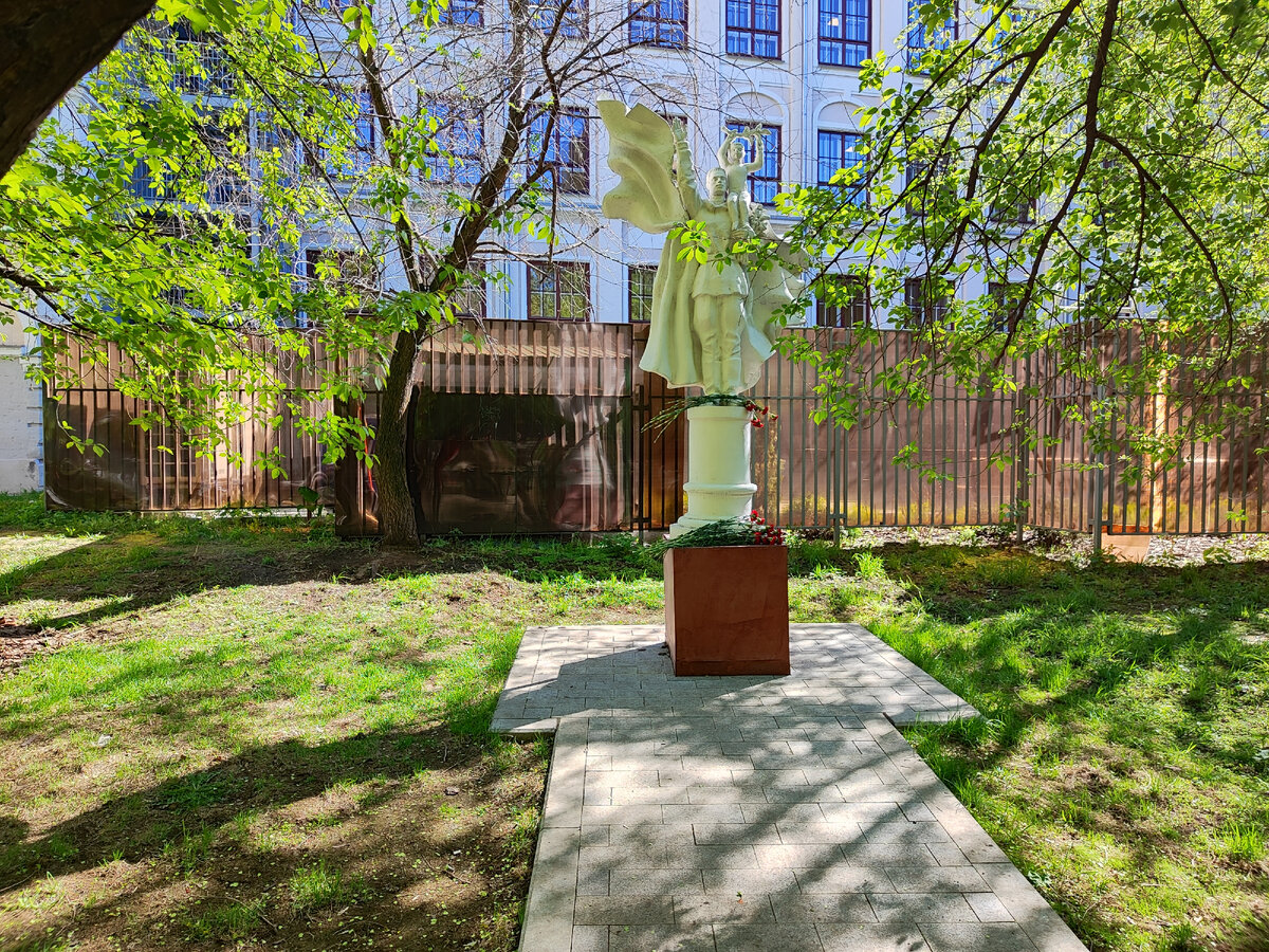 Очень люблю я бесцельно гулять по Москве. Вот и на днях свернула с Арбата и затерялась в арбатских переулочках. И оказалась на улице Сивцев Вражек. А там небольшой сквер, названный на гугл-картах "Экология", а в других источниках "Сквер Бурганова" по имени скульптора, чья мастерская с музеем расположены рядом. В сквере выставлены скульптуры Бурганова. Некоторые, самые странные, я вам уже показывала. Но есть там и вполне понятные, в классическом стиле работы. Например, вот эта, на военную тему. Рядом живые цветы. А у входа в сквер - целый уголок предполагавшейся российско-американской дружбы. Тут и панно, напоминающее о встрече советских войск с американскими союзниками на Эльбе, произошедшую в апреле 1945 года. И памятник, на котором изображены рядом Авраам Линкольн и Александр II, пожимающие руки друг другу. И надписи, свидетельствующие о нашей большой надежде, что дружба между нашими народами будет с каждым годом все крепче. Но не сложилось. Увы, надежды не оправдались и мы тепер