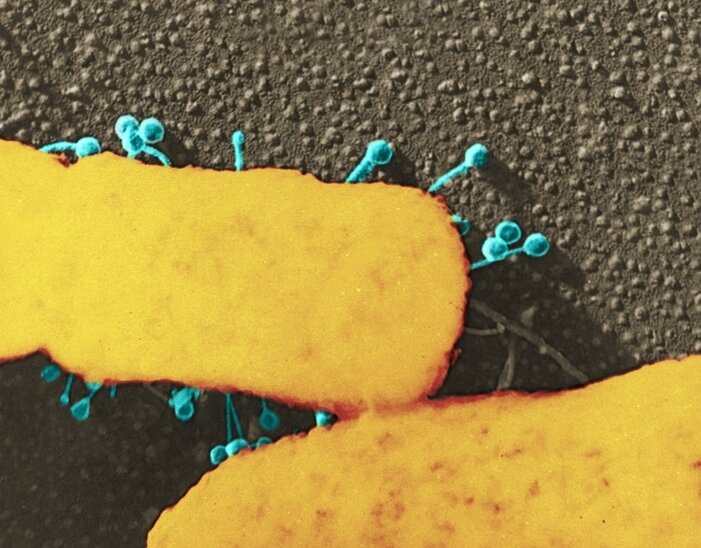 Бактериофаги – это особый вид вирусов, которые поражают только бактериальные клетки. Они действуют подобно другим вирусам: прикрепляются к оболочке клетки и внедряют в неё свой вредоносный генетический материал. После этого все ресурсы клетки направляются на производство новых копий вирусных частиц. Со временем их становится так много, что они разрушают оболочку клетки и переходят на соседние, пока не уничтожат всю колонию. На сегодняшний день существует множество препаратов, созданных на основе бактериофагов. Они широко применяются для лечения гнойно-воспалительных заболеваний дыхательных путей, желудочно-кишечного тракта и урогенитальных инфекций. Не стоит опасаться, что бактериофаги смогут мутировать и начать заражать клетки человеческого организма. Эти вирусы обладают высокой специфичностью и не смогут проникнуть и разрушить клетки, которые не относятся к царству бактерий. Спасибо друзья, больше материалов про биологию и микромир Вы можете найти в моём профиле. Подписывайтесь на ка