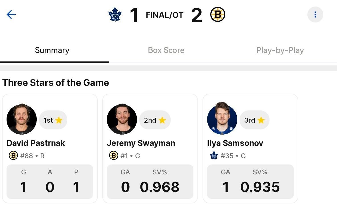 Илья Самсонов, потерявший статус первого номера «Торонто» по ходу противостояния с «Бостоном», занял место в воротах «Лифс» в решающей встрече с «Брюинз», что было продиктовано повреждением Джозефа Уолла, великолепно сыгравшего в 5-м и 6-м матчах серии. Большую часть 7-го поединка Самсонов смотрелся прилично, отразив несколько опаснейших бросков. Посмотреть видео НХЛ признала Самсонова третьей звездой матча, что вряд ли послужит ему даже слабым утешением. Разочарованные очередным вылетом из первого раунда плей-офф поклонники «Торонто» не упустили возможности пропесочить российского вратаря. @SailPros:– Самсонов – полный отстой! Молюсь, чтобы он больше никогда не надел джерси «Торонто». Ну что же он за неудачник – оба гола сегодня были на его совести. У него вообще нет уверенности в себе, он психологически слаб. Уолл так здорово отработал в предыдущих матчах – но теперь все впустую. @__GREATGAZOO:– Нельзя ни в коем случае подписывать новый контракт с Самсоновым – даже если брать его на