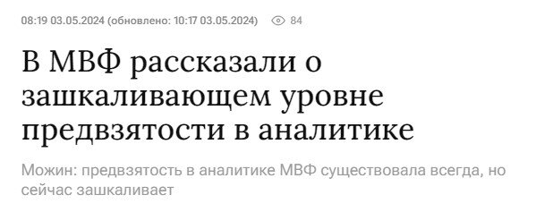 Ну вот, например. В МВФ рассказали о зашкаливающем уровне предвзятости в собственной аналитике.