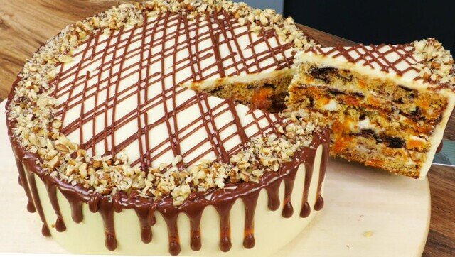 Здравствуйте! Сегодня мы приготовим необыкновенно вкусный домашний торт со сметаной, курагой, черносливом и грецким орехом. Рецепт простой и быстрый, так что вы сможете насладиться этим лакомством уже скоро. Курагу и чернослив нужно залить водой, прокипятить 2-3 минуты, после чего достать из воды, обсушить бумажным полотенцем и нарезать средними кусочками. В миску для замеса теста вбиваем яйца, добавляем сахар и соль, а затем взбиваем всё до получения устойчивой пены. В отдельной ёмкости соединяем муку с разрыхлителем, после чего добавляем эту смесь к жидкой массе. В полученное тесто аккуратно вмешиваем заранее подготовленные сухофрукты и орехи. Тесто разделите на три равные части и распределите по формам диаметром 24 см. Отправьте формы в духовку, разогретую до 180 градусов, и выпекайте коржи в течение 20-30 минут. Время приготовления может варьироваться в зависимости от особенностей вашей духовки, поэтому следите за процессом и не допускайте пересушивания коржей. Приготовим крем. Для