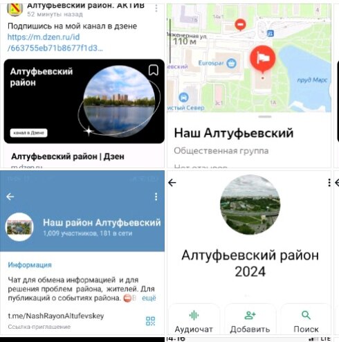 📝 Информация для жителей района Алтуфьевский: 🔴 Чат для общения - https://t.me/NashRayonAltufevskey 🔷Телеграмм Канал района Алтуфьевский https://t.me/ALTraionNash 🔷Мы в ВК - https://vk.com/altnarod 🟩 Чат ватсап -https://chat.whatsapp.com/DaYsImzLMPX1qvsgb1n4vY 🟠 Наш Алтуфьевский — Яндекс Карты https://yandex.ru/maps/org/nash_altufyevskiy/151405810875/ Мы в дзене m.dzen.ru/id/663755eb71b8677f1d3b0d9f?share_to=link 🟢 Актив района 8-915-057-67-97 Ирина 8-926-212-35-21 Александра