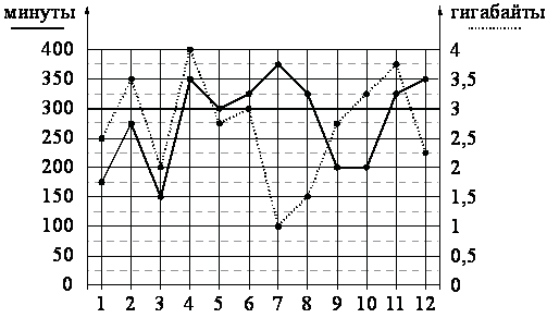 в процессе пользования смартфоном, за каждый месяц 2019 года. Для удобства точки, соответствующие минутам и гигабайтам, соединены сплошными и пунктирными линиями соответственно.