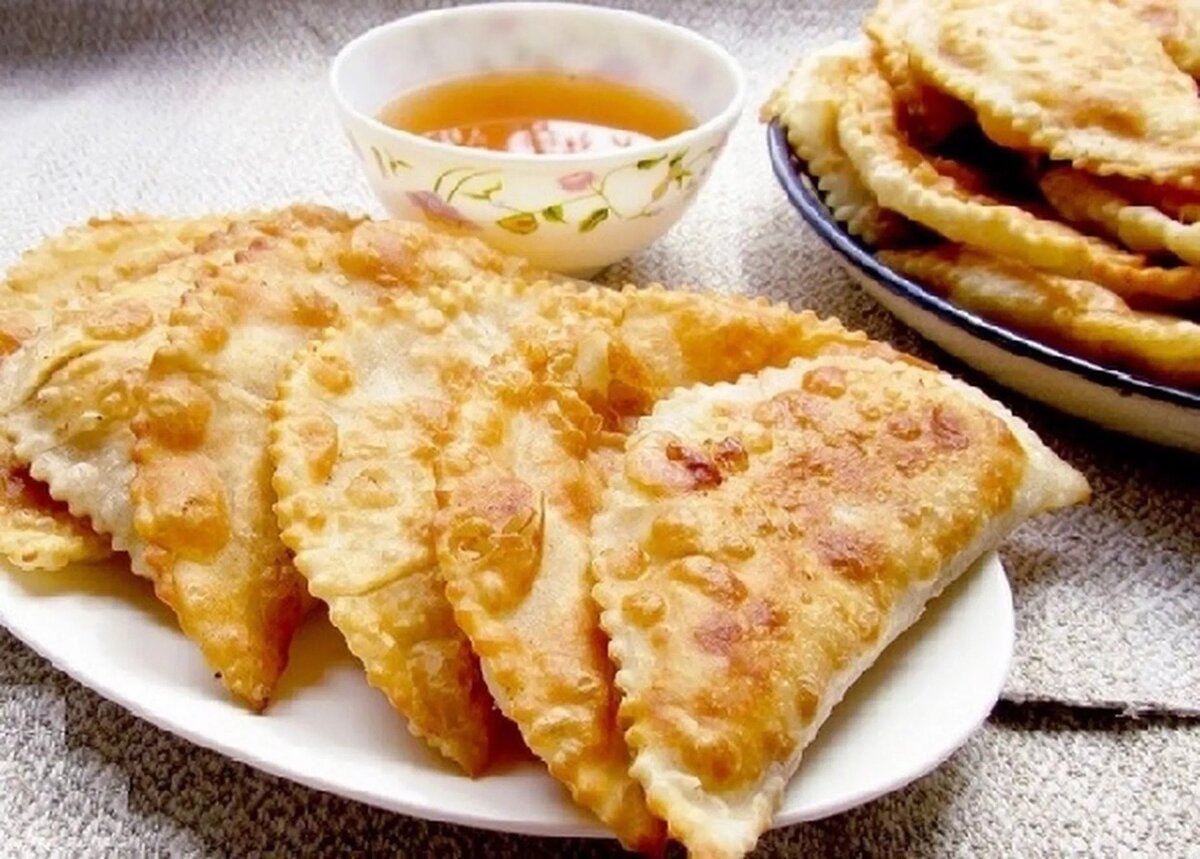- Тесто для чебуреков (500 г пшеничной муки, 250 мл воды, 1 яйцо, 1 чайная ложка соли)