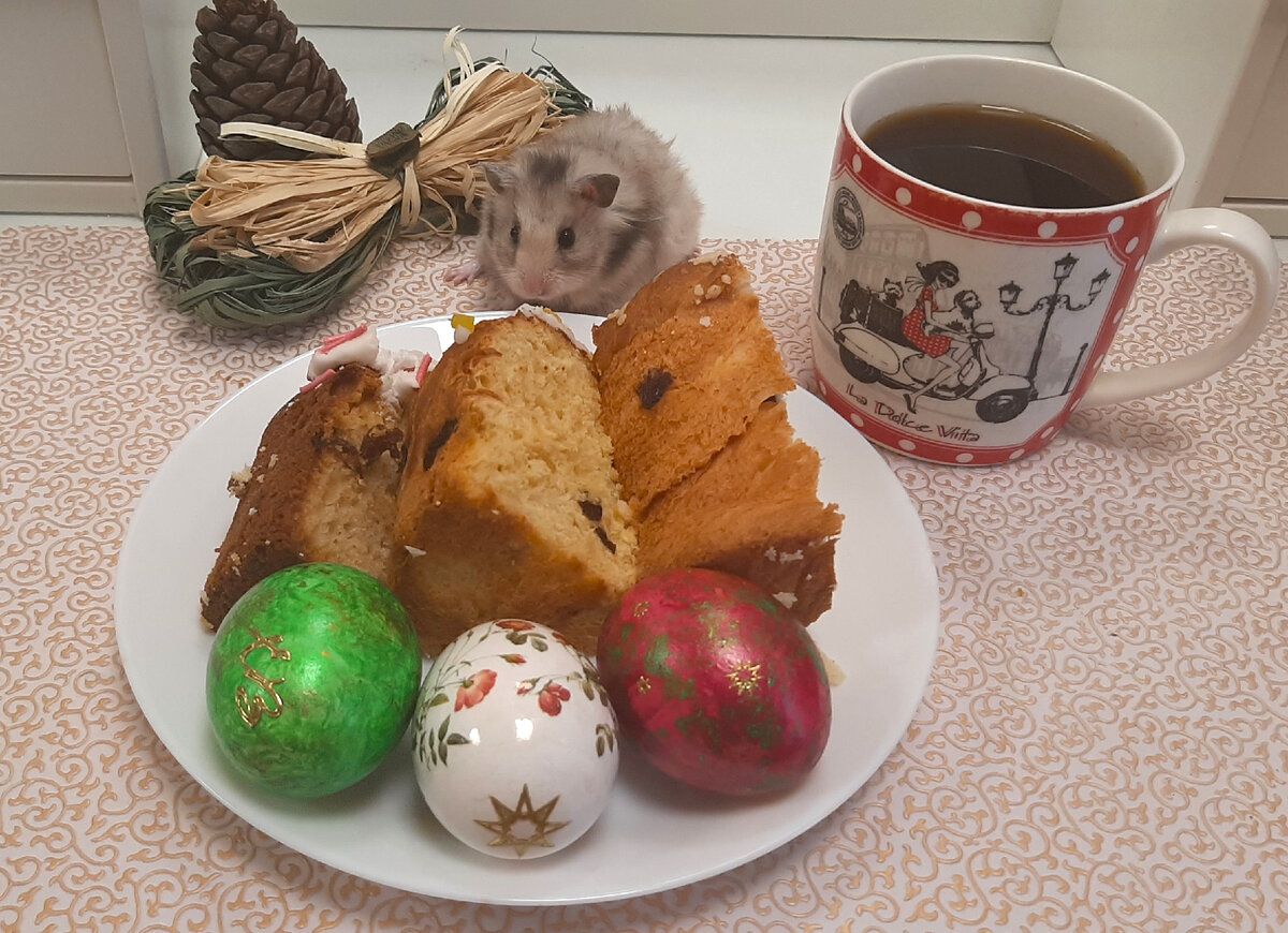 Поздравляю вас с Праздником Светлой Пасхи! Я обычно старалась сама готовить куличи. И даже готовила в микроволновке, когда у меня не было духовки, а кулич очень хотела сделать своими руками, чтобы порадовать родных. Но в этот раз я решила не печь куличи, а купить их, благо они продаются во всех продуктовых магазинах на любой вкус и разный кошелек. Я купила три кулича от разных брендов. Все куличи стоили относительно недорого в магазине "Дикси". Кстати, именно в этом магазине всегда перед праздником много разных видов куличей. На фото мой питомец - сирийский хомяк. Внешне все куличи выглядят неплохо, ароматные в меру. 1. Кулич "Кружевной" от бренда "Сдобная Особа" Вся выпечка от этого бренда всегда сладкая, мягкая, воздушая и вкусная. Кулич-не исключение. Мне понравился. Кулич выполнен в виде в стиле "краффин". В разрезе: Состав: 2. Кекс "Воскресный" от бренда "Коломенский" Мне он понравился больше всех ! В разрезе: Состав: 3. Кулич "От Палыча" от бренда "У Палыча" Не понравился ни мне,