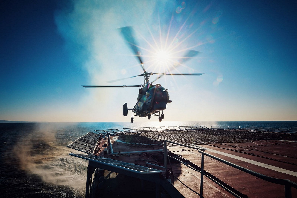Большой противолодочный корабль (БПК) «Адмирал Пантелеев» Тихоокеанского флота (ТОФ) отработал совместную подготовку с экипажем палубного вертолёта Ка-27ПЛ в Японском море. Экипаж вертолёта Ка-27 в противолодочном варианте вылетел с аэродрома базирования в Приморском крае, после чего совершил перелёт в район проведения тренировки. Вертолётчики выполнили взлёты и посадки на палубу большого противолодочного корабля, провели облёты корабля с целью проверки его радиотехнического вооружения, комплексов противовоздушной обороны, систем связи и управления авиацией. Далее в морском полигоне боевой подготовки экипаж БПК «Адмирал Пантелеев» во взаимодействии с вертолётом провёл тренировку по поиску подводных лодок условного противника. Экипаж БПК получил от вертолёта Ка-27ПЛ данные о нахождении в районе неопознанной подводной лодки условного противника. После обнаружения «вражеской» подводной лодки экипаж БПК «Адмирал Пантелеев» условно применил по ней реактивные глубинные бомбы и противолодочны
