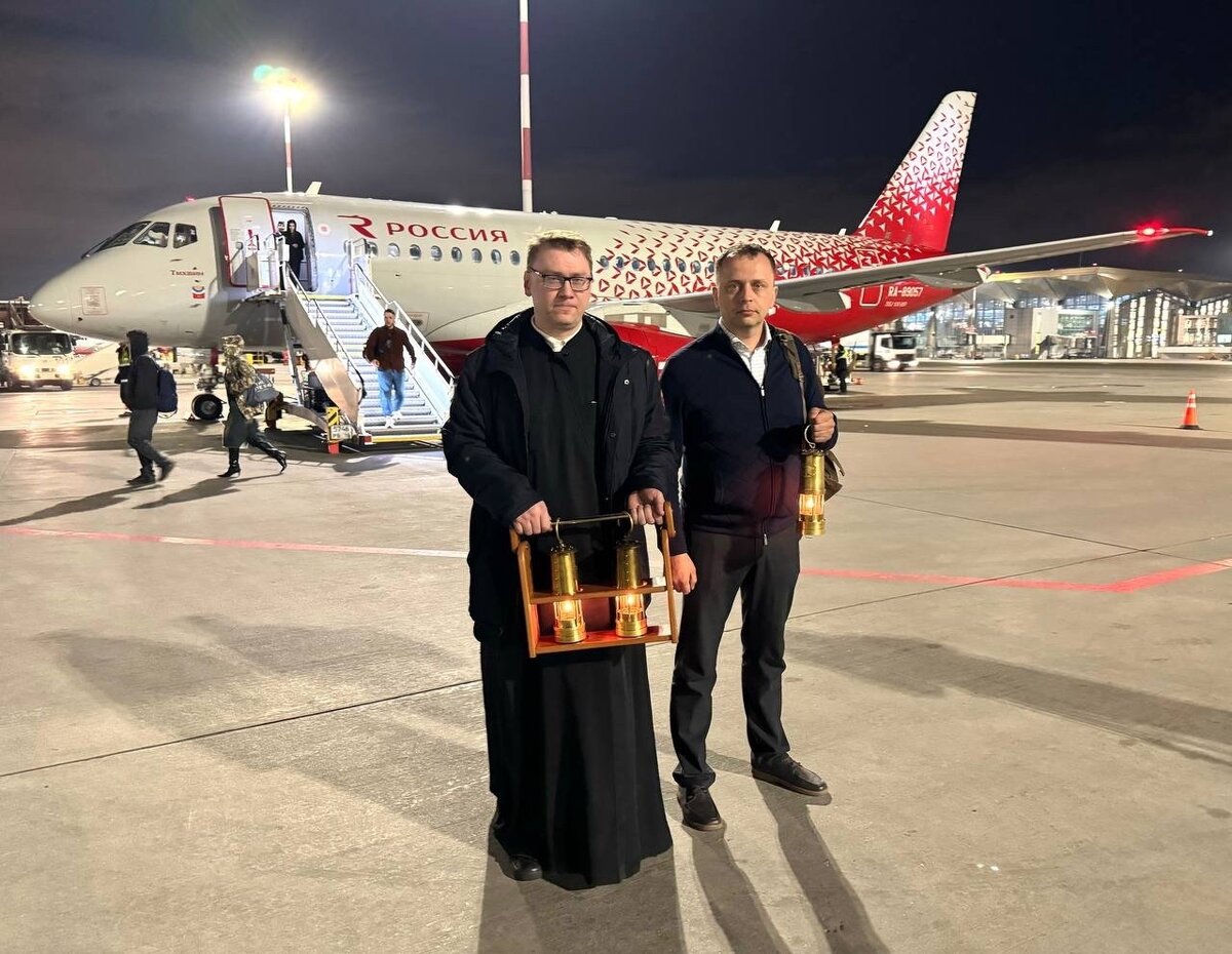 В ночь с субботы на воскресенье в аэропорт Пулково прибыл самолет авиакомпании «Россия» с Благодатным огнем. Этот священный огонь, зажжённый в храме Гроба Господня в Иерусалиме в Великую субботу, считается одним из чудес православного христианства.