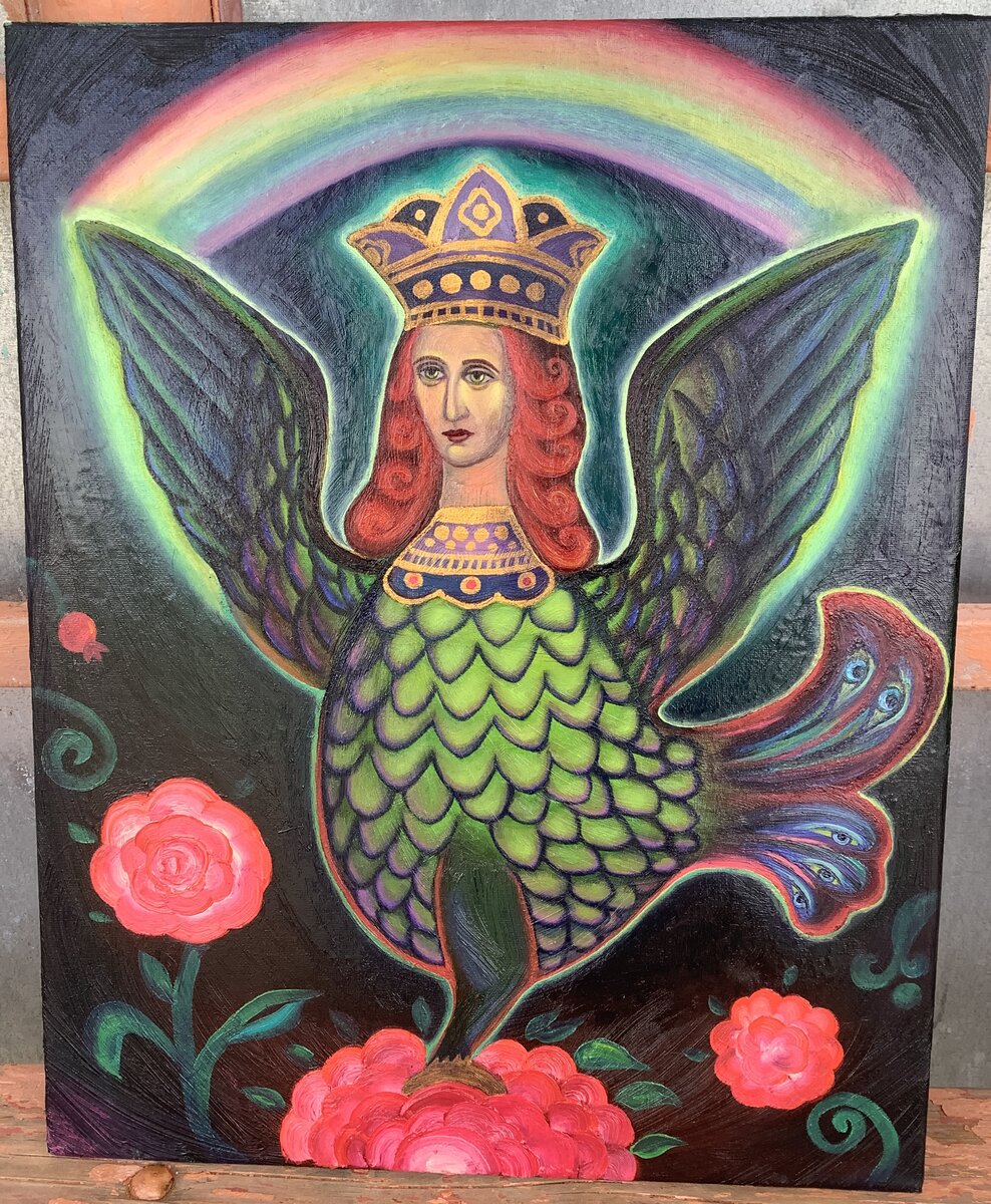 Как раз сегодня я закончила эту работу, вдохновением для которой послужило посещение музея народных промыслов Сиринов там очень много, а мне всегда нравился этот образ. Насытилась и решила воплотить Холст, масло