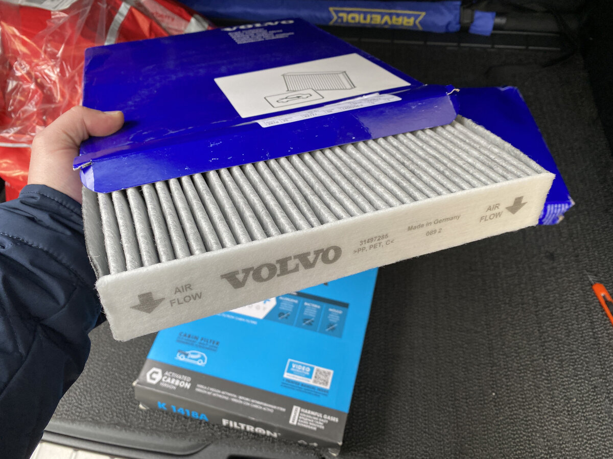 Все оригинальные фильтры Volvo и угольный Filtron были куплены на авито у проверенного продавца, обычный салонный и воздушный Filtron куплены на быстройкоробке.