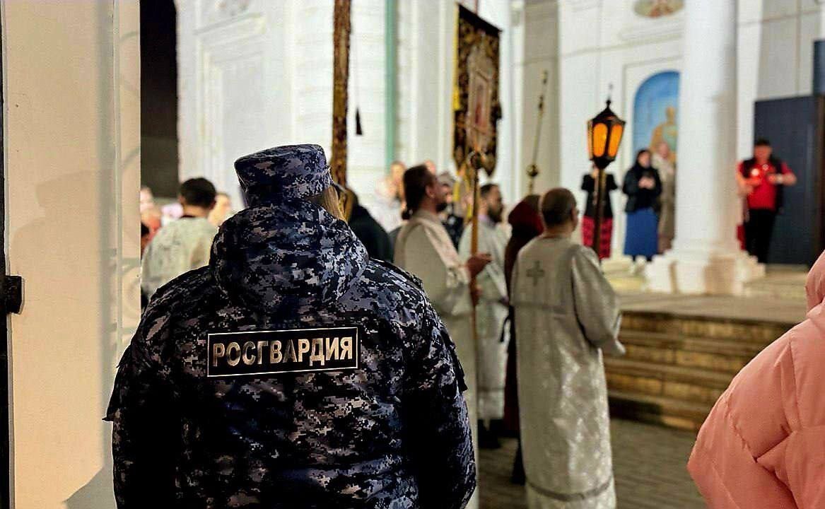 В обеспечении безопасности граждан во время богослужений, крестных ходов и литургий, посвященных празднованию православного праздника Пасхи, приняли участие более 500 военнослужащих и сотрудников Главного управления Росгвардии по Московской области. В период празднования Пасхи маршруты патрулирования экипажей вневедомственной охраны приближены к местам проведения праздничных мероприятий. Более 200 объектов религиозного культа взяты под охрану сотрудниками Росгвардии в 29 городских округах Подмосковья.