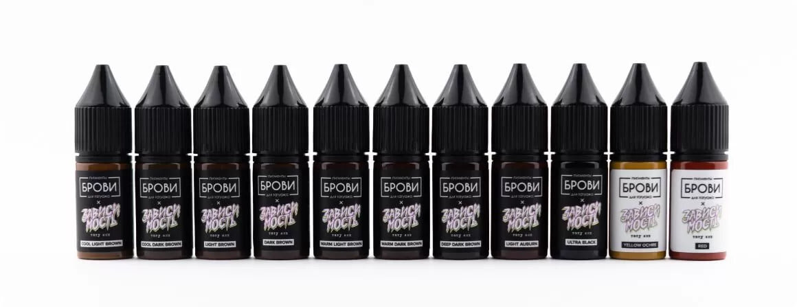 Неорганика BROVI ONE собрана на базе тату-краски «Зависимость Тату Инк» — нового проекта Богдана Месхи по производству красок для татуировки. Именно поэтому оба бренда работают в коллаборации.