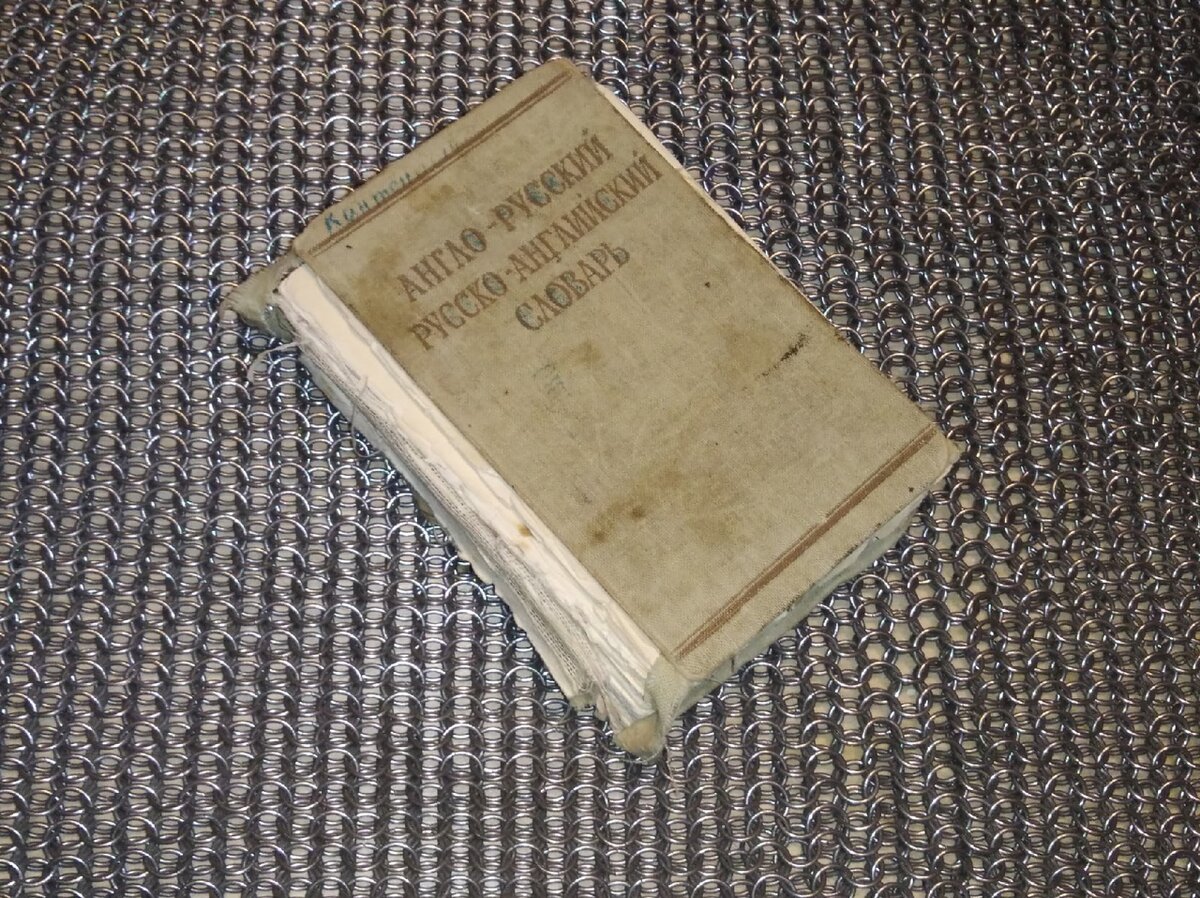 Этот потрёпанный жизнью и людьми словарик приобрёл ещё мой отец. Что б лучше понимать аглицкий на учёбе. Книжица - старше меня, 67 году выпуску. После выпуска папка ушёл в моря, и словарик ходил с ним, что б лучше понимать аглицкий в зарубежных портах. Когда я в школе начал учить аглицкий, папка отдал словарик, тем более, списался на берег. Сей талмуд помогал мне аж до очередного вылета из хаёвни, в 89-м. Тогда я, в сердцах, уехал домой. На вечно. На цельный год. Словарик сгинул в отъездной кутерьме. Было жалко, да и привык к нему. Но делать нечего, и курсы разговорного международного закончил без поддержки. Поступил по-новой в ХАИ, и как-то раз, сидя за рюмкой чая, посетовал, что нет у меня удобного словаря. Догадайтесь с трёх раз, какой словарик мне принесла Девочка Женя (у нас в компашке был и мальчик Женя, вот что б не путать - он был просто Женька, а Женя женского полу звалась (и отзывалась) на Девочку Женю)? Правильно! Мой словарик выпуску 67. Погулял годик по общаге и вернулся.