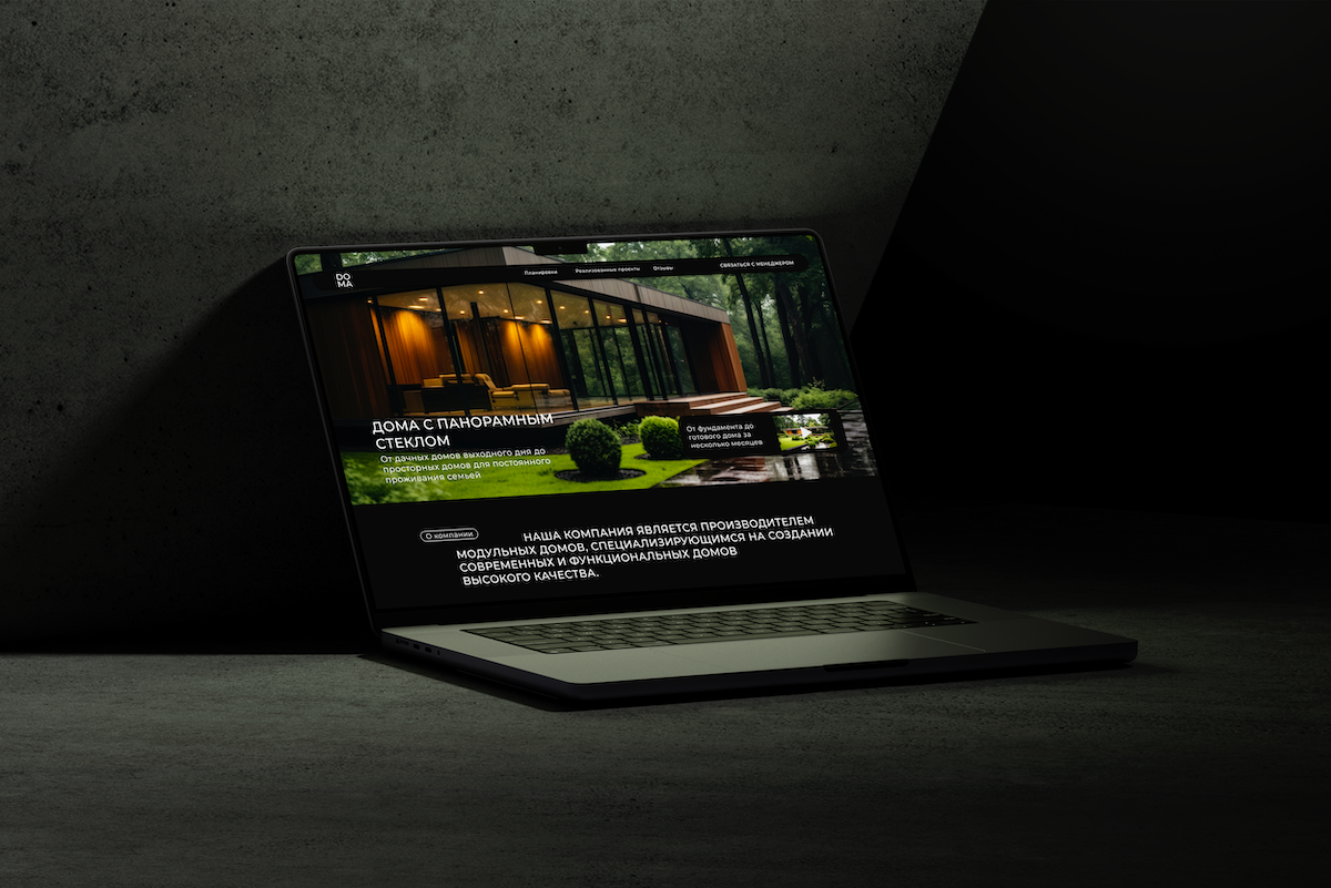 Мы рады поделиться нашим результатов успешной работы со строительной компанией DOMA, специализирующейся на создании современных загородных домов с панорамным остеклением. Наша задача заключалась в разработке уникального и функционального лендинга, который отражал бы современный стиль и профессионализм компании, а также обеспечивал бы простоту в администрировании и эффективность в сборе заявок. Задача Строительная компания DOMA имеет свой уникальный стиль и подход к проектированию и строительству домов, и наша цель заключалась в том, чтобы отразить этот стиль и профессионализм в дизайне сайта. Нам также требовалось создать сайт, который был бы легко администрируем специалистами отдела маркетинга DOMA и обеспечил бы эффективный сбор заявок от потенциальных клиентов. Решение Мы разработали сайт-одностраничник на платформе WordPress, что обеспечило легкость в управлении и обновлении контента для специалистов отдела маркетинга DOMA. Дизайн сайта был разработан с учетом уникального стиля ком