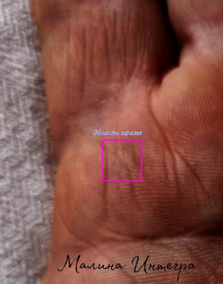 Здесь шрам отразился так, что у обладателя руки был констатирован рак простаты, да и вообще эта область часто подтверждает гинекологические заболевания у женщин.