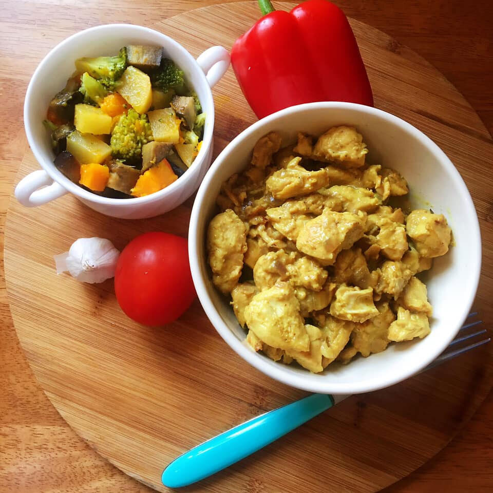 Поделюсь рецептом своей любимой курицы в тайском стиле. В зависимости от предпочтений в семье его можно варьировать, добавляя перчик чили, мускатный орех и другие специи. Это - базовый вариант. Нам понадобится: ✔ Грудка куриная - 500 г; ✔ Чеснок – 2-3 зубчика; ✔ Лук – 1 шт.; ✔ Молоко кокосовое или кокосовые сливки - 150 мл; ✔ Куркума – 1 ч. л.; ✔ Имбирь сушёный – 1 ч. л.; ✔ Масло гхи или оливковое – 25-30 г; ✔ Перец чёрный - ¼ ч. л.; ✔ Перец красный – ¼ ч. л.; ✔ Соль - по вкусу. Курицу очищаем от плёнок, режем небольшими кусочками. Добавляем специи, соль и немного кокосовых сливок или молока. Оставляем на час в холодильнике. Мелко режем лук и чеснок. Обжариваем в масле, добавляем замаринованную курицу и готовим до готовности курицы (где-то 10 минут). Вливаем сливки, кипятим минутку и отключаем. Чтобы курица впитала соус и стала более сочной, оставляем ее на 10 минут в сковороде. КБЖУ курицы по-тайски на 100 г – 177/14,4/12,3/2,9. В качестве гарнира может выступать бурый рис, овощи. Мне
