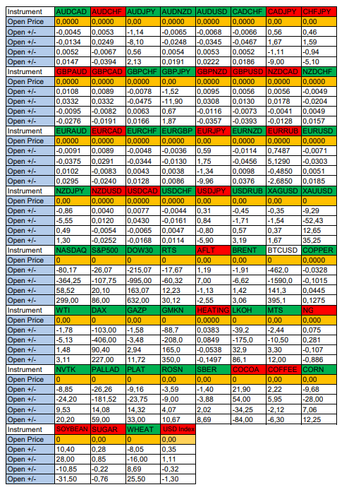 Весь перечень анализируемых активов указан ниже в общем количестве 60 инструментов. Здесь Вы найдете активы рынка Форекс, популярные активы Московской биржи, популярные активы Чикагской биржи СМЕ и мажор криптовалютного сегмента - Биткоин.