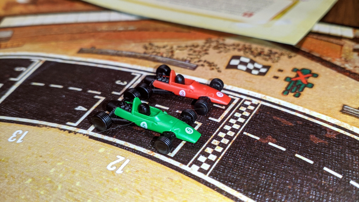 Во-первых, «сюжет». Авторы предлагают нам окунуться в атмосферу гонок Формулы-1 60-х годов прошлого века. Я бесконечно люблю автомобильную тематику и пока никак не могу ею насытиться в настольных играх. И... да, здесь мы будем на самом деле гонять. Навёл справки, игрушки подобного толка (кивок в сторону «Крути педали!») уже были, однако через мои руки не проходили. Во-вторых, «Days of Wonder». Это издатель, конечно, но пока всё, что было от него, радовало. В-третьих... качество, внезапно. Тут есть вполне добротный органайзер, здесь льняные (может я что-то не так щупаю, но мне попадается не так много игр «HW» с льняными картами. Если сравнивать с другими производителями — да, похоже на то. Либо закос под лён, но держать в руках приятно) карточки и очень интересные фигурки игроков-водителей.