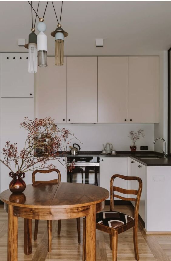 1. Например, использовать обеденную группу с винтажной мебелью на фоне минималистичной кухни - стулья и стол, становится акцентом, поэтому правильный для них фон, будет подчёркивать уникальность и эстетику таких предметов. 2. Не обязательно делать классику во всех интерьерах. Лучше, чтобы не переборщить, использовать отдельные редкие предметы, они уже сами по себе задают особый и неповторимый стиль интерьеру. Тёмная мебель должна сочетаться с другими тёмными или насыщенными элементами. Могут повторяться плавные формы или кованные элементы. 3. Тихая роскошь – так можно описать применение раритетной мебели в современном минимализме. Это могут быть редкие предметы декора, вписанные в общую концепцию и идею интерьера. Уникальный предмет всегда выделится на фоне другой мебели простых форм! 4. На фоне встроенного простого минималистичного хранения прихожей можно спокойно поставить винтажную банкетку или консоль, где шкафы будут смотреться как продолжение стен и играть роль фона. 5. Добавить
