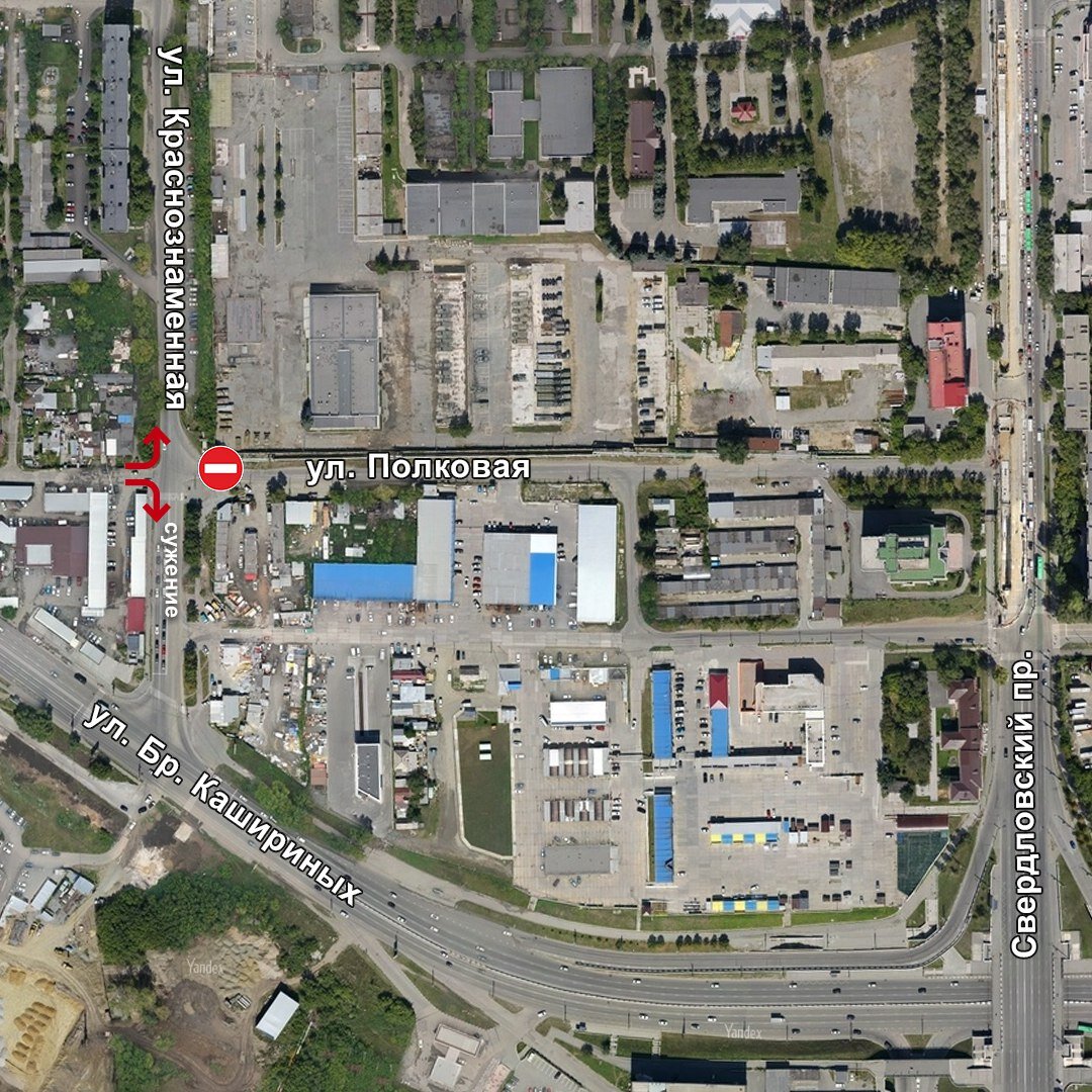Там также уточнили, что на участке улицы Краснознаменная от улицы Братьев Кашириных до Полковой произойдет сужение проезжей части, поэтому транспорт будет двигаться по временной схеме.