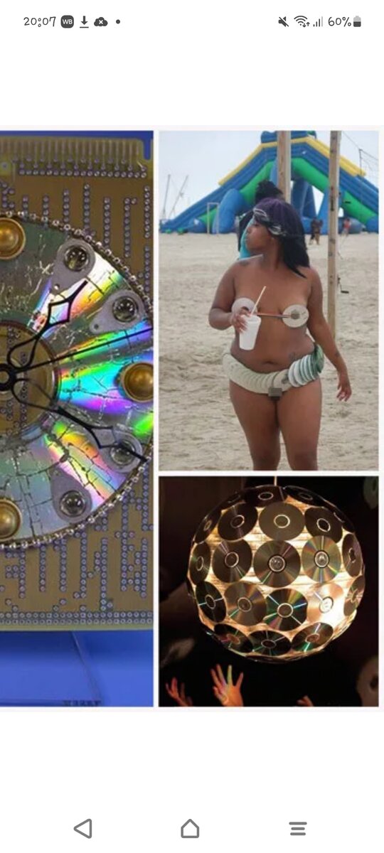 Расставаться с вещами, которые сейчас уже и не нужны, а когда-то были куплены за бешеные деньги сложно. Может они послужат и принесут пользу другим людям? Для этого я сначала выкладываю их в объявлении на Авито за шоколадку или символическую плату. Так обстоят дела и с дисками. Пересматривать содержимое уже никто не будет. Наши диски отдала мужчине бесплатно. Он их летом на пасеке пересматривал😄 Приехали в новый дом и тут целый ящик с этими дисками🙉 Фильмы, игры, мультфильмы в оригинальном качестве кинула на барахолку. А что делать с теми, на которые мы сами скидывали содержание? Пиратские, получается. Просто выбросить или найти подходящую идею? С глаз долой, из сердца вон! Пересмотрела уйму вариантов поделок их дисков в интернете. Муж сразу предложил шуточную — купальник😂 Посмеялись и ладно. Мне же понравилась вот такая идея. Интересные украшения. Захотелось сделать и посмотреть, как будут выглядеть наяву. Куда применить? Олька уже отметила на стене 4 места, куда повесит в своей