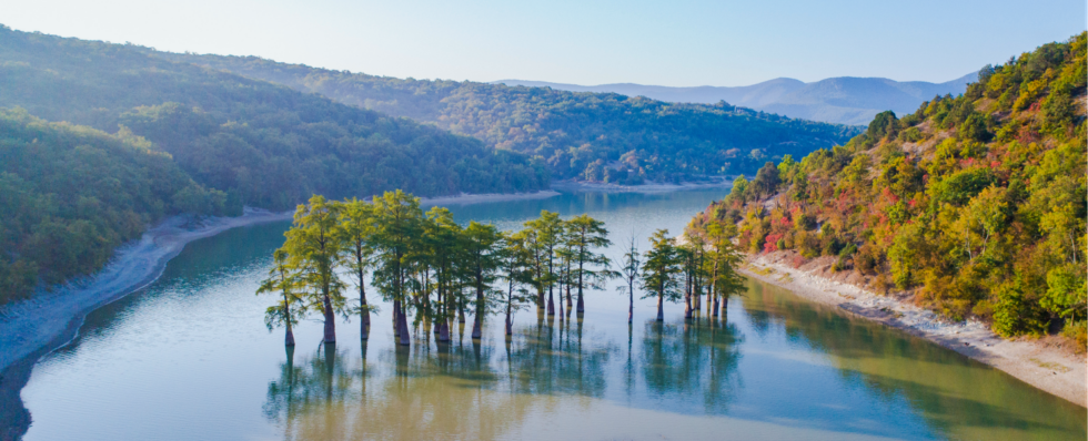 Интересно, что эта точка притяжения туристов появилась в результате проведённого почти сто лет назад эксперимента. Часть искусственного водоёма засадили болотными кипарисами: они прижились и выросли в величественных великанов, звёзд соцсетей.