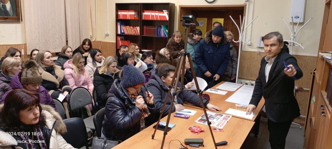 19 февраля провели первую встречу с наблюдателями. На встрече член ТИК города Подольск Воркуев В.Н. рассказал о работе наблюдателей на выборах Президента РФ.
