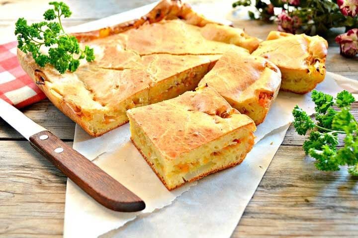 5. Сверху кладем капусту и накрываем оставшимся тестом.