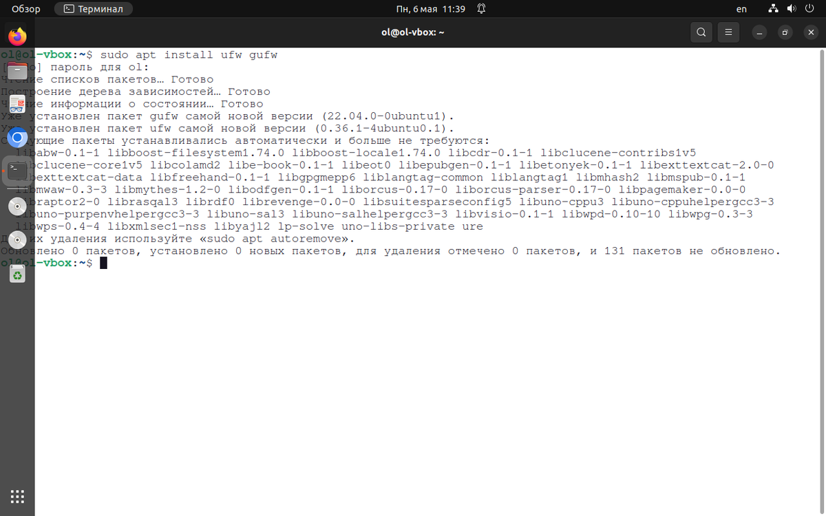 .. Всем привет. Продолжаем любить Linux Ubuntu и рассматривать её в качестве альтернативы Windows. Как известно, в Windows есть брандмуэр, который представляет собой защитный экран от угроз из сети, как из локальной сети, если она есть, так и из интернета. А в линукс Ubuntu что? Нет ничего? Есть. Это межсетевой экран "UFW". Есть его консольный вариант "ufw" и вариант с графической оболочкой "gufw". Я использую вариант с графической оболочкой. Зачем мучаться с настройками в консоли если есть удобный тул, который позволит сэкономить время, тем более если вы его не настраиваете каждый день. .. УСТАНОВКА .. Установка выполняется одной командой, все необходимые пакеты зависимости подтягиваются автоматически (знак доллара набирать ненадо, это символ командной строки): После установки этот межсетевой экран можно запустить из главного меню как обычную программу. У программы есть 3 профиля работы: Дом, Офис и Общественное место. Это сделано для того чтобы при подключении к разным сетям настроит