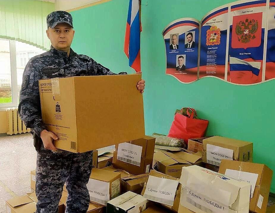 В преддверии Дня Победы сотрудники Подольского отдела вневедомственной охраны Главного управления Росгвардии по Московской области совместно с кадетами военно-патриотического движения «Гвардейская смена» подшефной школы № 25 присоединись к акции «Своих не бросаем». Вместе с росгвардейцами кадеты приняли участие в сборе гуманитарной помощи для бойцов в зоне проведения специальной военной операции. В посылках собраны продукты, сухие напитки, предметы первой необходимости, а также медикаменты и сладости. Упакованные вещи переданы представителям волонтерских движений, которые в скором времени доставят посылки и письма со словами поддержки адресатам.