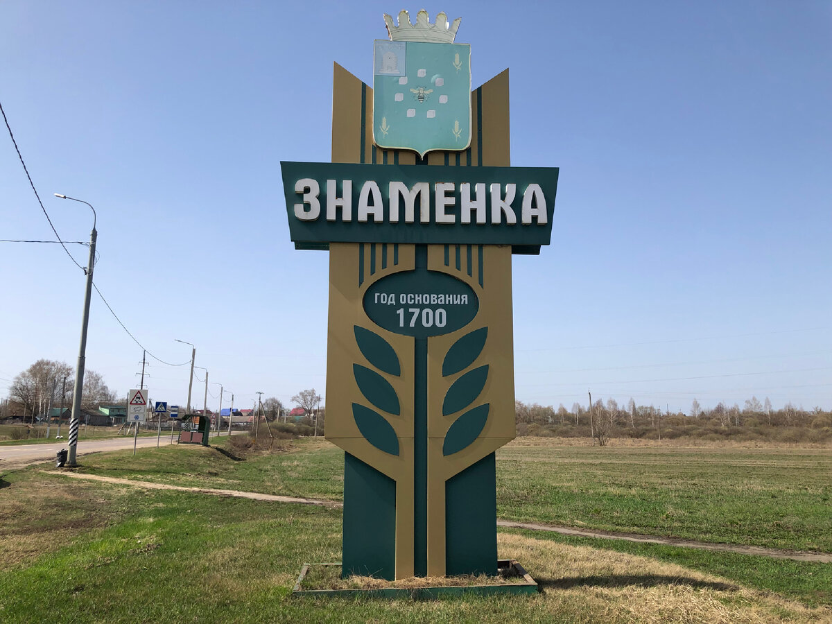 На въезде в Знаменку мы сфотографировали колоритную стелу. Как видите, поселение с очень давней историей! Год основания Знаменки - 1700-й.