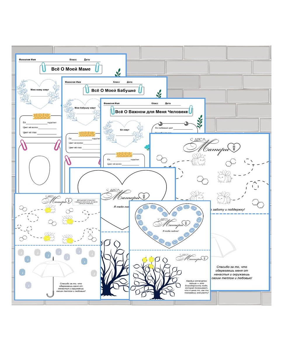 Используйте рабочий лист как уникальный подарок ко Дню Матери, вложив его в открытку, наполненную искренними словами и пожеланиями. Интересно, что рабочие листы позволяют учащимся уделить внимание не только маме, но и другим важным людям в их жизни. Важно, чтобы каждый ребенок чувствовал себя включенным в процесс и понимал, что его опыт и отношения также ценны. Поэтому предусмотрены листы о бабушке и других значимых для ребенка людях, таких как сестра, тренер, учитель или тетя. Вместе с детьми вы можете создать особенный момент, наполненный любовью и заботой к близким людям. В представленном файле к Дню матери включены не только рабочие листы, но и шаблоны открыток, которые дают возможность создания персонализированных поздравлений. (4 открытки) Общая открытка без надписи "День Матери" предлагается для тех, кто хочет выразить свои чувства и благодарность не только матери, но и другим близким людям. Этот набор отлично подходит для печати как на чёрно-белом, так и на цветном принтере. Кр