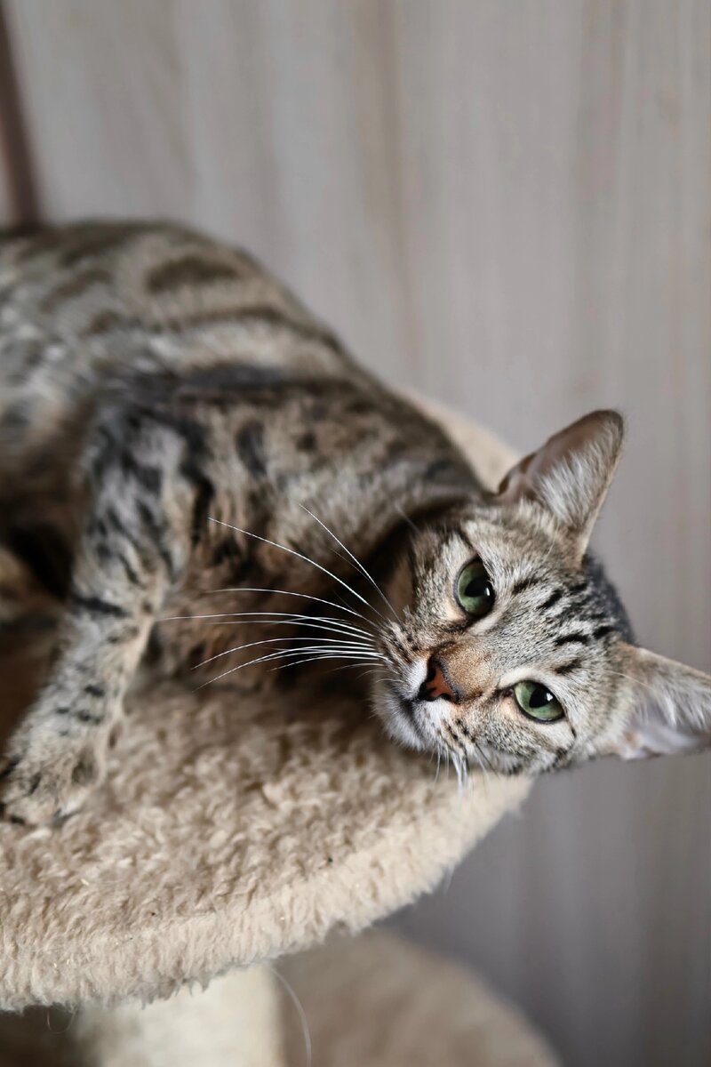 #бертасчастливыйхвост Какая у нее благородная форма головы, а эти уши вразлёт, а пятнышки на боках! На самом деле, конечно, ни о какой породе речь не идет, но Берта для нас все равно красавица! Берта еще совсем молодая кошка, но что такое жизнь знает отлично! Она выживала в подвале сама, растила котят и у нее неплохо получалось. Берта смогла установить отличные отношения с людьми и благодаря этому регулярно получала бонусы в виде корма для своих котят и себя, а потом и вовсе переехала на квартирную передержку. Подвальная кошка оказалась идеальной квартирной: аккуратная, чистоплотная, всё понимающая. Но тюфяки на улице не выживают, поэтому у Берты железный характер. На передержке несколько котиков, причем они все уже старожилы, но с Бертой не забалуешь. Она запросто может наподдавать и своему котенку, решившему присесть не туда по нужде и всем остальным, кто (по её мнению) нарушает правила, которые она и установила. При этом с человеком Берта мила и приветлива, но опять же пока