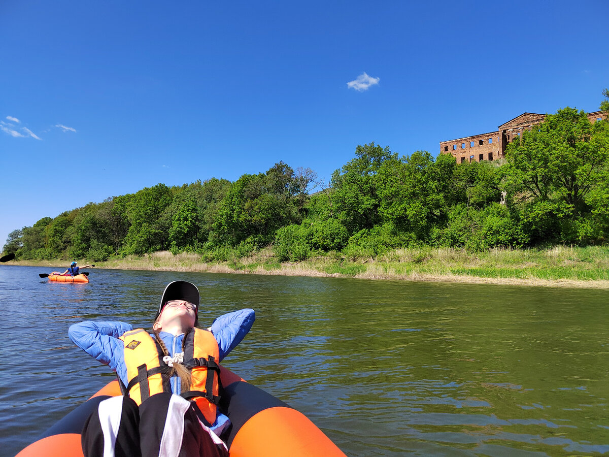 Надули-спустили на воду свои плавсредства, экипировались в спасжилеты, прослушали инструктаж о мерах безопасности на воде и пустились в плаванье.