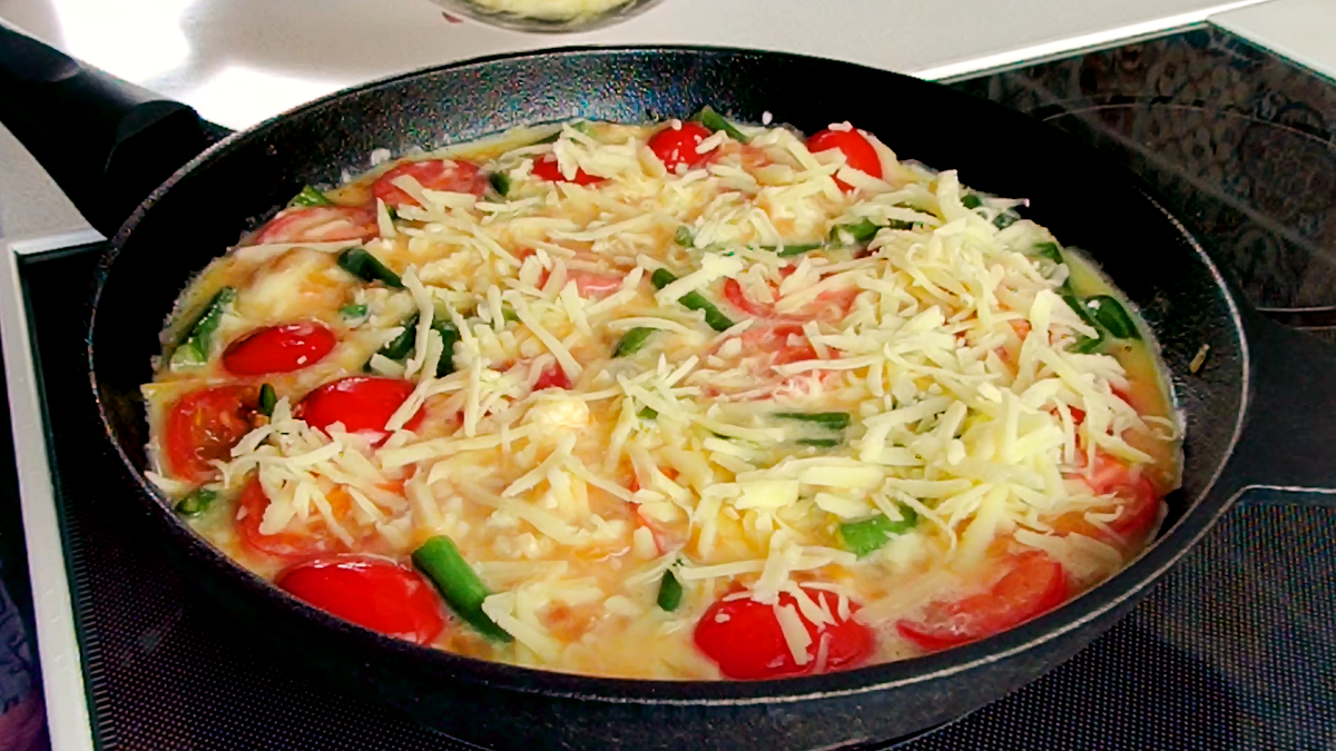 Омлет с сыром и овощами по-итальянски! Фриттата с сыром, томатами и зеленой фасолью