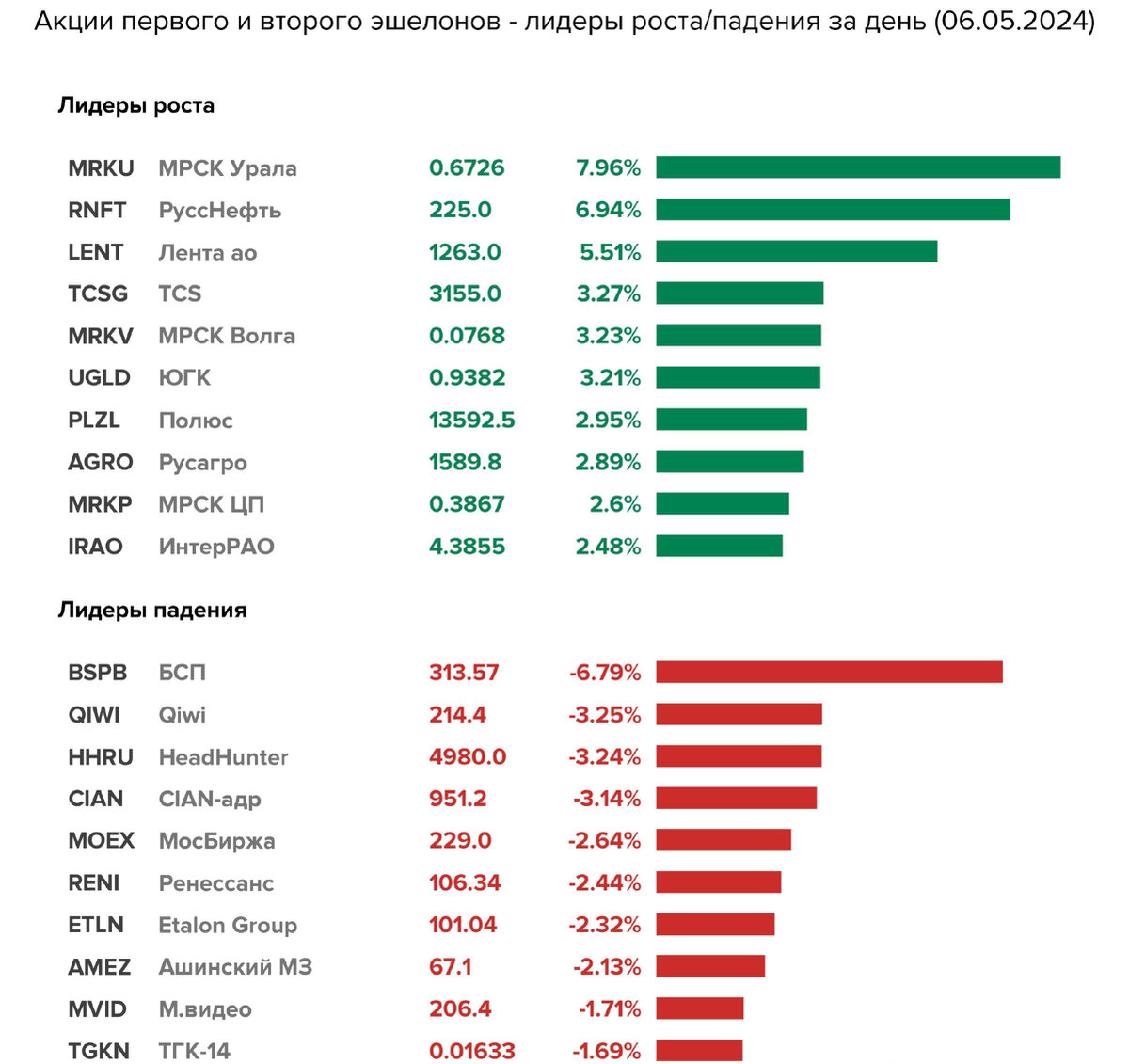 По итогам основной сессии 6 мая индекс Московской биржи снизился на 0,16%.