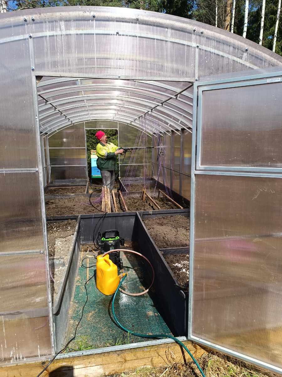 1 мая подготовка теплицы к сроку появлению рассады. Благодаря моему мужу и мойки теплицу отмыли всю. Специфика нашего региона не позволяет расслабляться. Чуть зазеваешься и мох будет везде и в теплице и на теплице. Но мы не даем ему не малейшего шанса. Все готовится к новому сезону. Хотела помыть все с раствором марганцовки, но мы решили пробовать новую мойку. Купили и пытаемся понять правильно сделали или выброшенные деньги. Как я уже писала крышу тоже нужно мыть иначе все прорастет мхом. Рассада наша ждет теплицу и теплых деньков. Решила в этом году высадить 15 мая. Типа точка отсчета будет. Грядки у нас высокие,земля прогревается хорошо. В этом году купила термометр который измеряет и температуру воздуха и температу почвы. Очень удобно. Посмотрим как будет реагировать моя изнеженная рассада. В этом году хочу посадить огурцы не только через рассаду, но и просто семечками, хочу знать есть ли смысл сажать огурцы и кабачки через рассаду. Идем дальше...