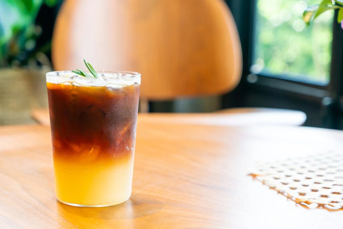 Терпкий эспрессо, цитрусовая кислинка и карамельная сладость в стакане со льдом освежают и бодрят в жаркий день. Бамбл принято пить через трубочку — так вкусы будут сменять друг друга по очереди. Но можно перемешать и наслаждаться кисло-сладким коктейлем.