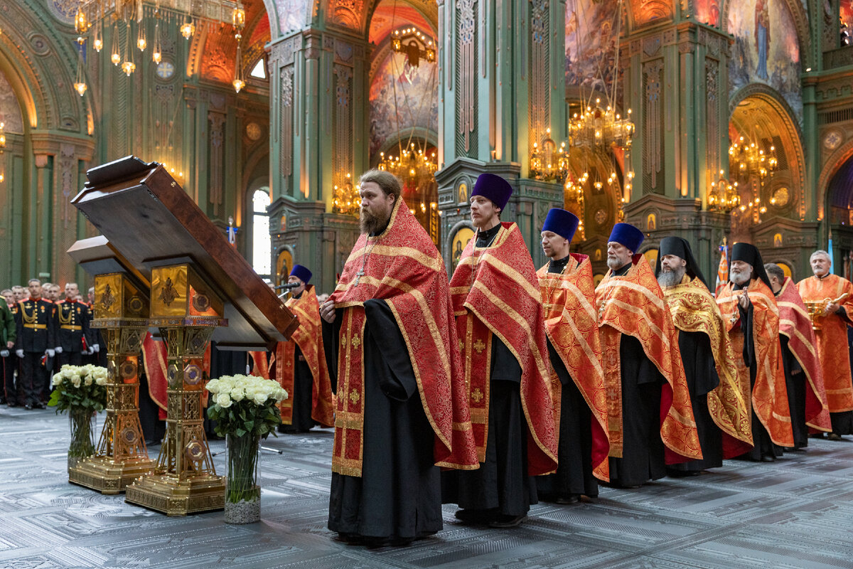 В Главном храме Вооруженных сил России состоялся торжественный молебен в честь 79-й годовщины Победы в Великой Отечественной войне. В нем участвовали более тысячи верующих. В это число вошло руководство Минобороны России, а также командиры и представители парадных расчетов, участники СВО, гражданский персонал МО РФ и прихожане. Возглавил богослужение викарий Святейшего патриарха Московского и всея Руси, митрополит Каширский Феогност. Он благословил военнослужащих, которым предстоит во время Парада Победы пройти по Красной площади. Такие молебны в преддверии Дня Победы проводятся ежегодно с благословения Святейшего патриарха Московского и всея Руси Кирилла с 2021 года.
