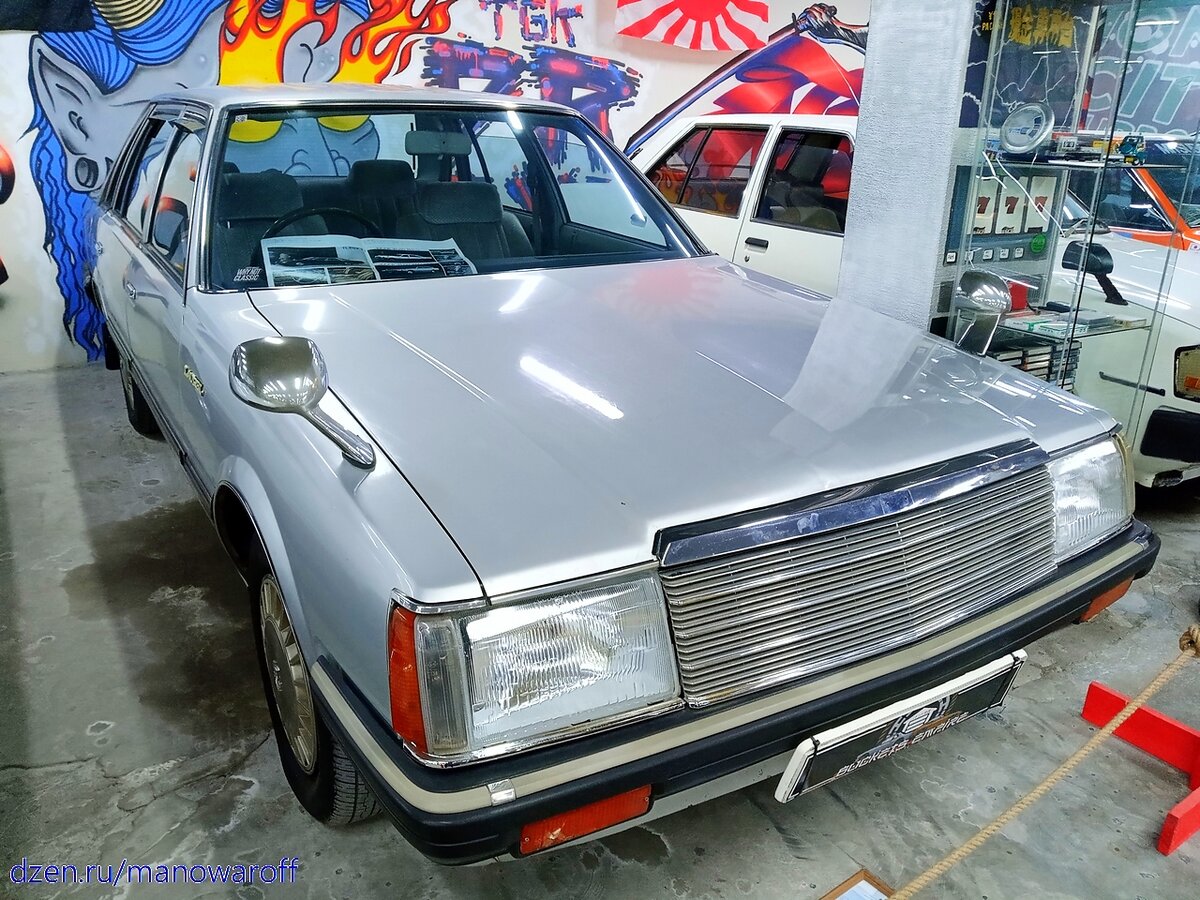 Начало Продолжаем знакомиться с машинами второго по величине японского автопроизводителя. Nissan Laurel, 1982 Автомобиль бизнес-класса, производившийся с 1968 по 2003 год. За это время было выпущено восемь поколений "Лавра". Музейный экземпляр принадлежит к четвертому поколению, известному под названием модель C31. Машина составляла конкуренцию тойотовским автомобилям Cresta и Mark II. Оснащались такие автомобили как бензиновыми (рядные четверки объемом 1.8 и 2 литра, рядные шестерки объемом 2 (плюс турбоверсия) и 2.8 литра), так и дизельными (рядная четверка объемом 2 литра и рядная шестерка объемом 2.8 литра). Все варианты комплектовались 4/5-ступенчатой механикой, либо 3-ступенчатым автоматом. Музейный экземпляр принимал участие в съемках фильма "Чемпион мира" (я не смотрел). Характеристики: Nissan Laurel, 1988 Модель C32 - пятое поколение автомобиля, появившееся на свет в 1984 году, внешне стало напоминать своих старших собратьев - Седрика и Глорию. В этом поколении на Лаурель впер