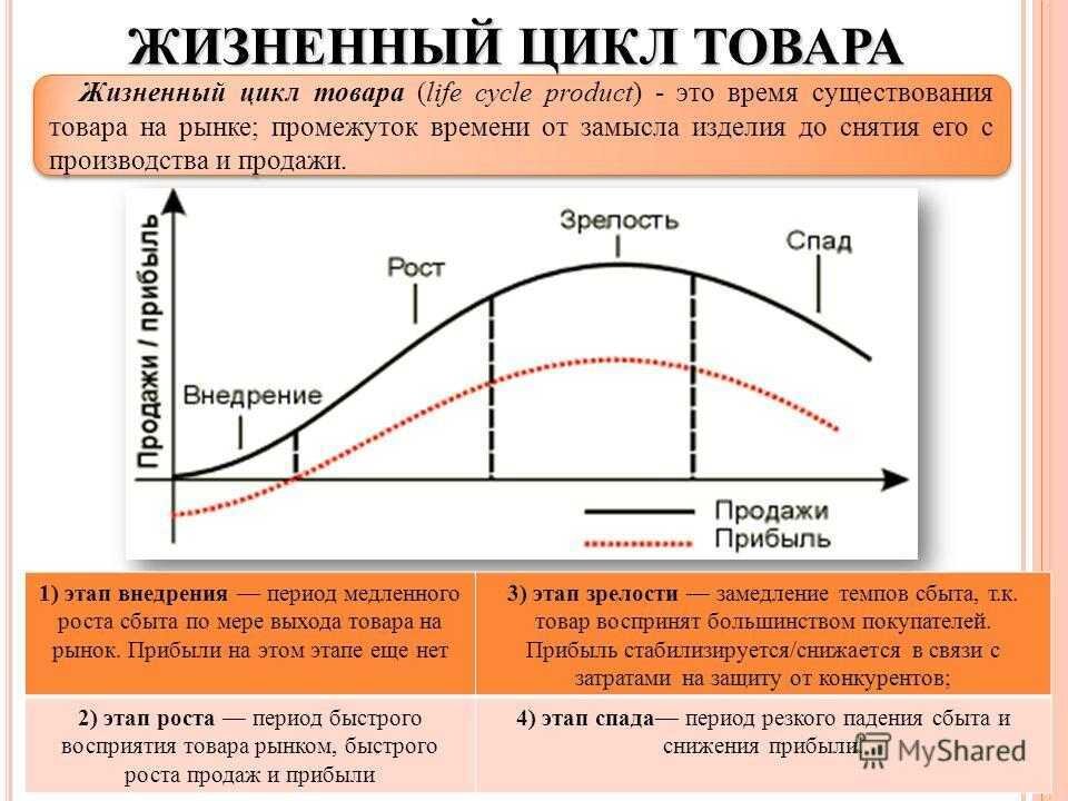 Жизненный цикл товара — это период, в который продукт существует на рынке. Другой вариант названия — жизненный цикл продукта, или ЖЦП.