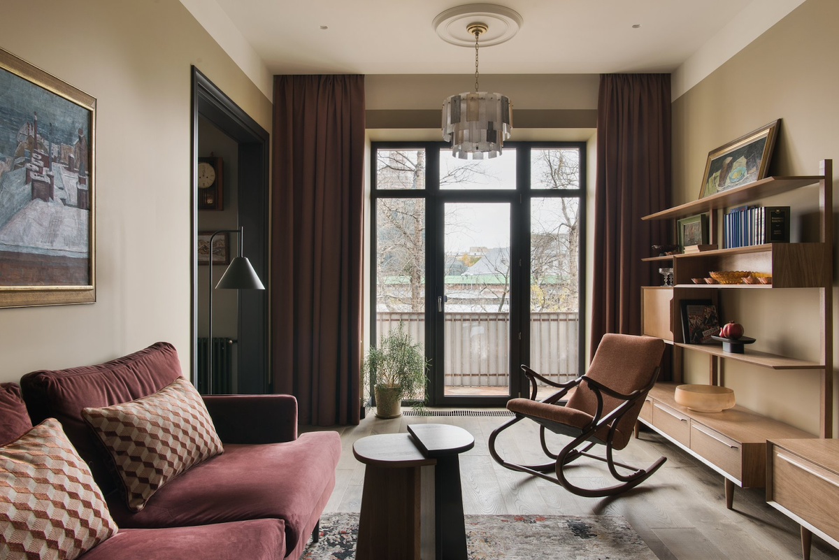 Хозяйка этой квартиры — истинный ценитель прекрасного — разыскивает старинные вещи на площадках объявлений и реставрирует их своими руками. А вот советские кресла достались ей от дедушки. Их привезли из Усть-Цильмы, старейшего села, которое известно своей самобытной культурой. Ангелина лично отреставрировала мебель: заменила поролон, обивку, почистила деревянные ручки и покрыла воском.