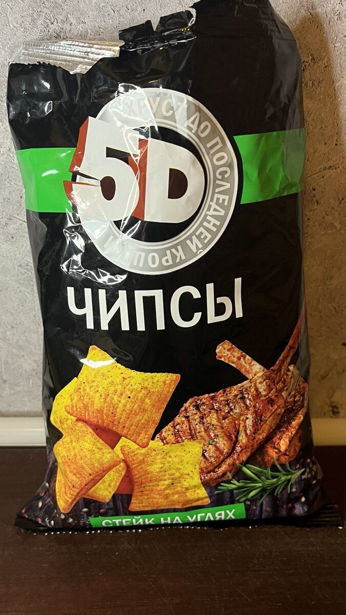 Всем привет, дорогие друзья! Многие заметили, что я частенько выпускаю статьи или видео про чипсы. Действительно, иногда под сериальчик очень хочется чего-то подобного. А с началом ведения блога появился ещё один повод купить что-то необычное. Да и выкидывать в случае чего не так жалко, для дела же. Итак, сегодня на обзоре 5D чипсы! Это примерно как всякие разные многоD кинотеатры, только чипсы. Начнём! Пачка стоила в районе 40 рублей в магазине Верный. Состав следующий: Мука пшеничная высший сорт, масло растительное, сахар, соль, антислеживающий агент карбонат кальция, ароматизатор «сметана и лук» (соль, лактоза, цельное сухое молоко, сахароза, сывороточный порошок, усилитель вкуса и аромата глутамат натрия 1-замещенный, регулятор кислотности лактат кальция, травы, натуральные вкусоароматические вещества, вкусоароматические вещества, антислеживающий агент диоксид кремния, регуляторы кислотности (диацетат натрия, лимонная кислота). Если честно, то это прям полная шляпа. Внешний вид нем