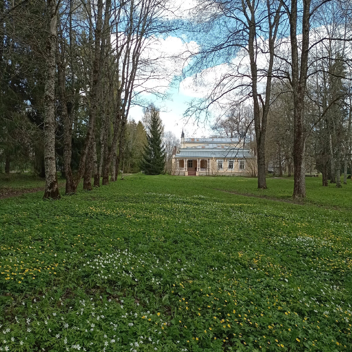 Здесь есть небольшая экотропа вокруг усадьбы: дорожки в основном грунтовые, есть небольшой асфальтированный участок, а также в заболоченных местах - деревянные настилы. С коляской было удобно гулять.