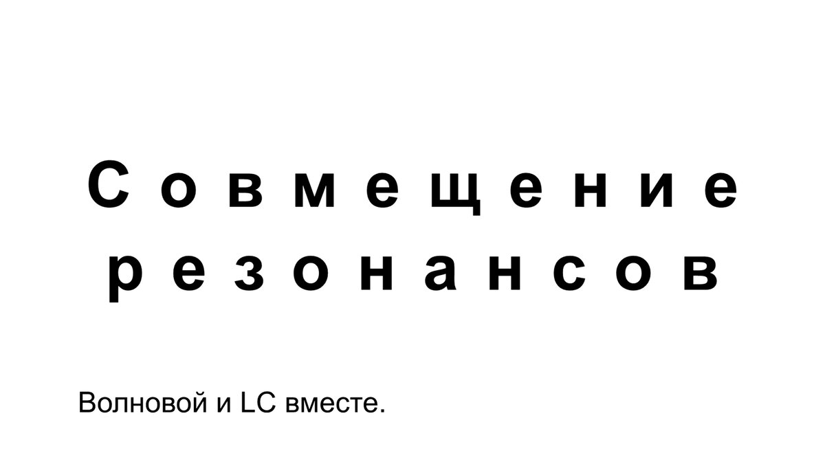 Один из вариантов совмещение резонансов в катушке. Нужно ли совмещать Волновой и LC резонанс в катушке имени Теслы? Каждый сможет ответить на этот вопрос сам. Если спрашиваете, что я ввожу в катушку, то это катушка на картонном корпусе, провод медь, сечением 2.5 мм. в оплетке ПВХ. Смотрим «Совмещение резонансов»