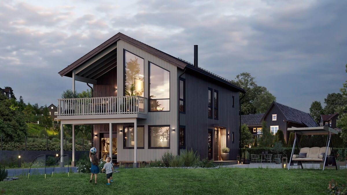 Количество ванных комнат- 2 Данный проект идеально подходит под строительство на узких участках. Здесь представлен дом на наклонном участке земли, но проект может быть легко реализован на ровной местности. Здание компактное и современное. В проекте предусмотрены три спальни. Мастер-спальня на втором этаже имеет прямой выход в ванную комнату и гардеробную. Сердце дома- открытая кухня и гостиная на втором этаже. Отсюда есть доступ к просторному крытому балкону. В здании спроектирован встроенный гараж с прямым доступом к дому.