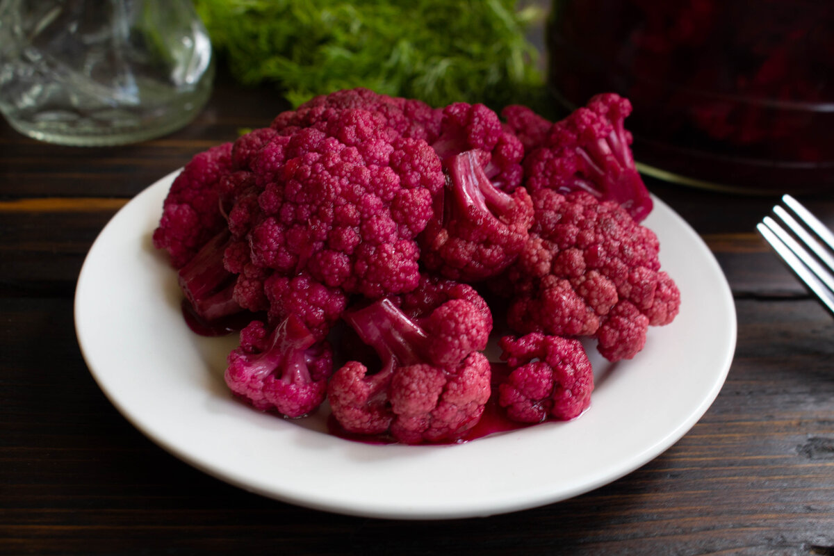 Когда не хочется цветную капусту обжаривать или тушить, то можно ее замариновать. Эту капусту будем мариновать со свеклой, свекла тут дает замечательный насыщенный цвет, но вкуса свеклы в готовой закуске не ощущается. Так что, даже если кто-то не любит свеклу, то эту маринованную капусту можно предложить и ему, вкуса нелюбимого овоща тут не будет. Маринованная капуста получается яркая, сочная, в меру хрустящая и ароматная. Эта легкая закуска украсит стол и поднимет аппетит уже одним своим видом. Ингредиенты: Капуста цветная - 1 кг. Свекла - 2 шт. Морковь - 1 шт. Лук репчатый - 1 шт. Чеснок - 4 зуб. Для маринада: Вода - 1 л. Сахар - 1.5 ст.л. Соль - 2 ст.л. Масло растительное - 4 ст.л. Лавровый лист - 1 шт. Перец острый - по вкусу Перец горошек - 5 шт. Гвоздика - 3 шт. Кориандр в зернах - щепотка Уксус 70% - 1 ч.л. В удобную глубокую посуду натрем через крупную терку свеклу и морковь. Морковь берем небольшую, свеклу яркую. Нарежем полукольцами небольшую луковицу. Все овощи, кроме цветно